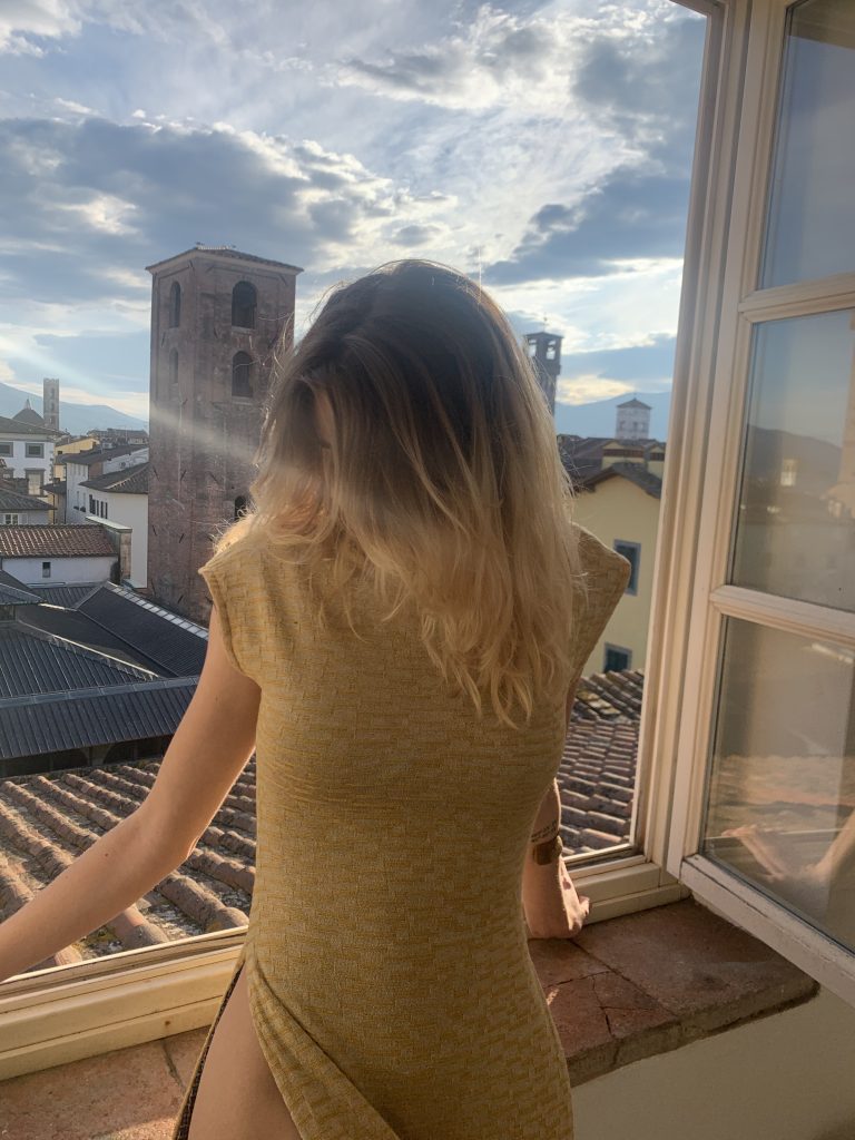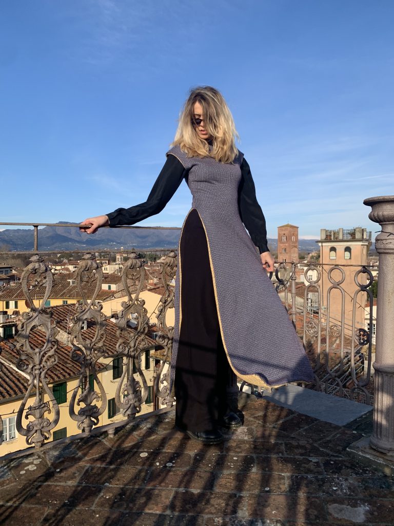 Made for showcase at a stall exhibiting independent designers at the craft and fashion fair 'Lucca Fashion in Flair'- This reversible tunic dress was made using offcuts from a knitwear factory. Championing a clean silhouette and sumptuous, high quality fabrics, the piece is designed to be worn layered, or alone for a more striking look.